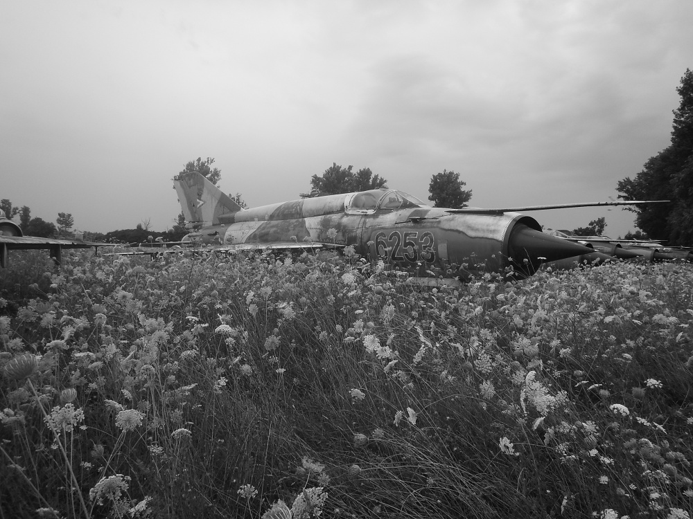 „Hřbitov MiGů“ na vojenském letišti Pápa. Odhadem něco přes třicet letounů, v naprosté většině se jedná o letouny Mikojan-Gurjevič MiG-21bis, dva letouny Mikojan-Gurjevič MiG-21UM a tři letouny Suchoj Su-22M3.